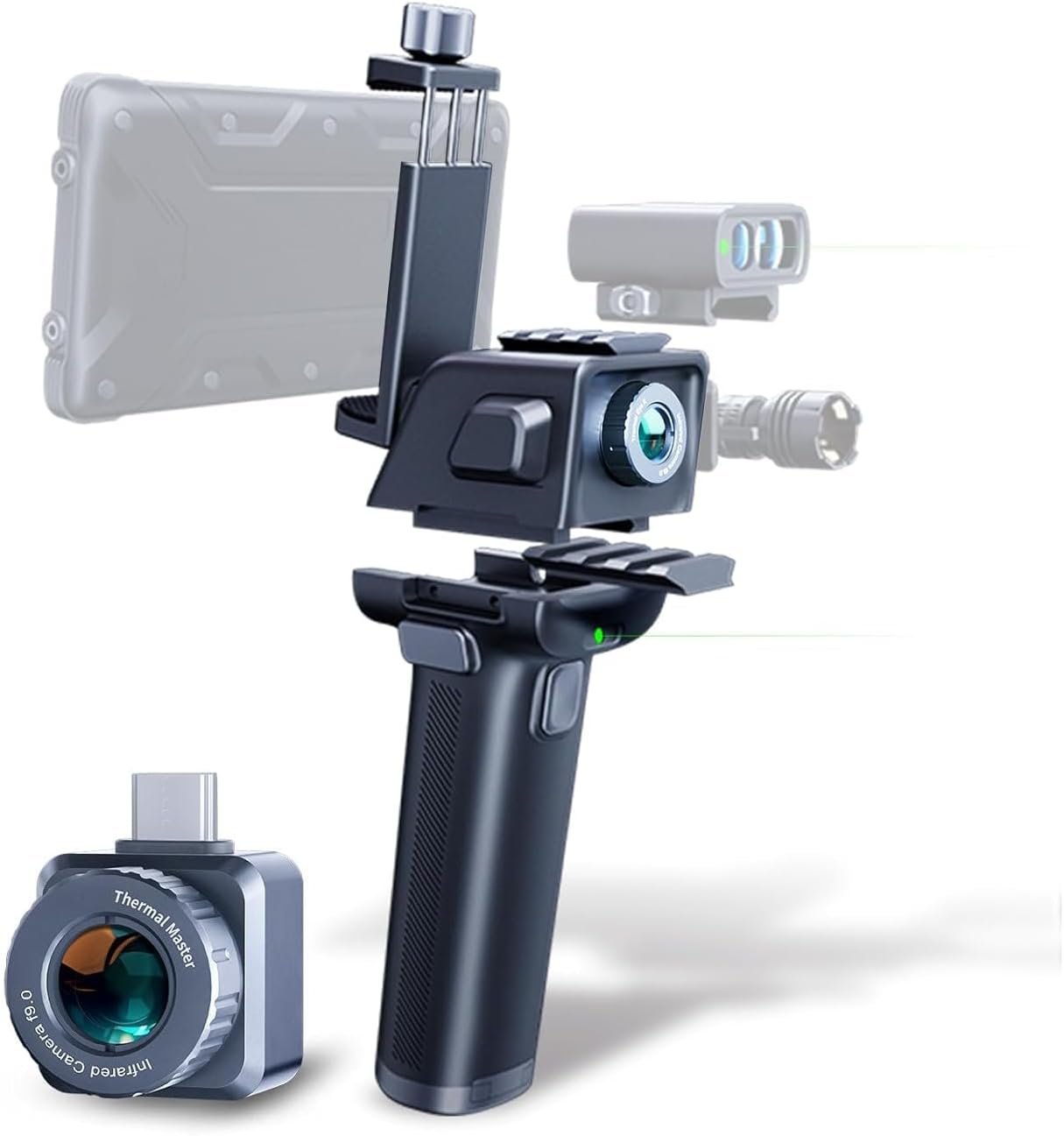 Figure 1.1: The Thermal Master X2 Thermal Camera system, showing the main camera module, the power handle, and a smartphone mount. The camera can be used independently or integrated with the handle for enhanced usability.